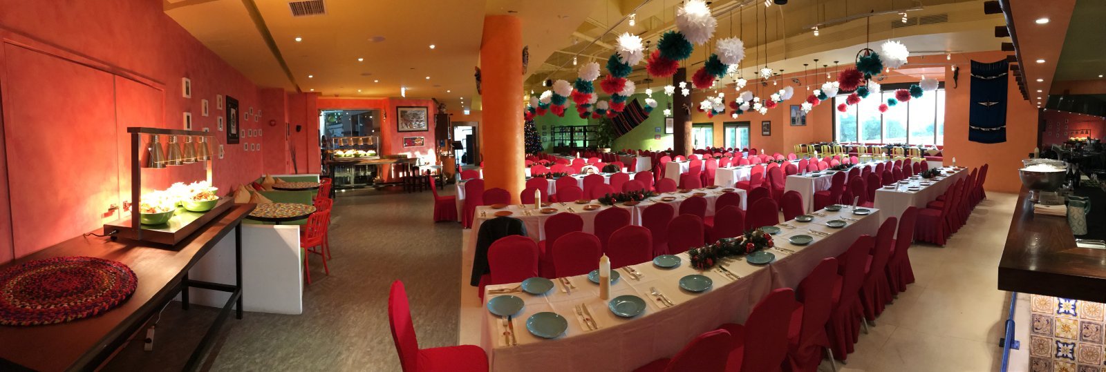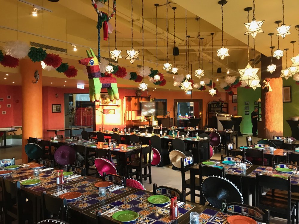 With 150+ seats EL Charro ticks all the boxes in its appearance with its eye-catching interior featuring bright red and sunburst orange, tilled tables fill the main floor area whilst clever partitioning creates several private areas.